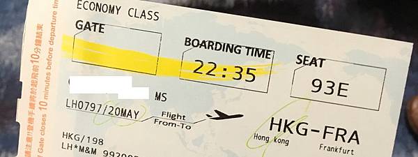 登機證部分,會一次給兩張(台北到香港、香港到法蘭克福),如果有問題,這時候趕快問,不然到別個國家就要用英文問了